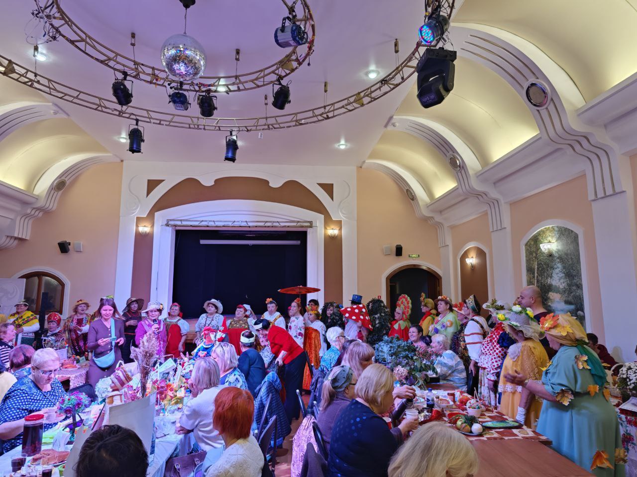 Невероятный восторг вызвало дефиле участников, которые, кружась в танце и подпевая солистам, прошли в созданных ими осенних нарядах под музыкальный аккомпанемент гармони и баянов. В концертном зале после просмотра выставки прошел праздничный концерт прекрасной и неповторимой солистки ГУ МВД России по Самарской области Геллы Майоровой.